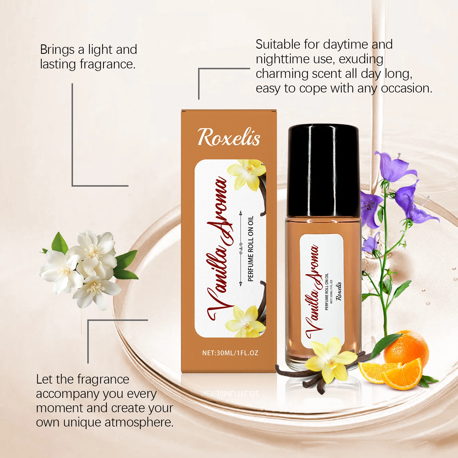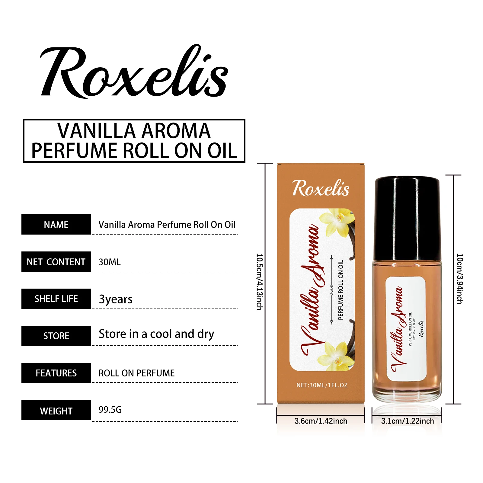 Roxelis 30ml Vanilla Pheromone Perfume Roller Ball Long Lasting Elegant Fragrance Romantic Dating Flirting Charming Lady Perfume